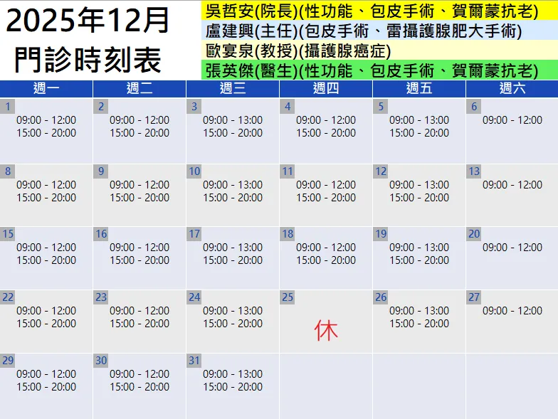 12月看診時間表| 泌尿科推薦| 台中泌尿科推薦| 台中泌尿科