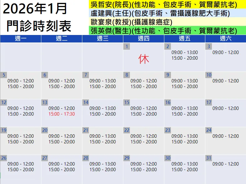 2026年1月看診時間表| 泌尿科推薦| 台中泌尿科推薦| 台中泌尿科