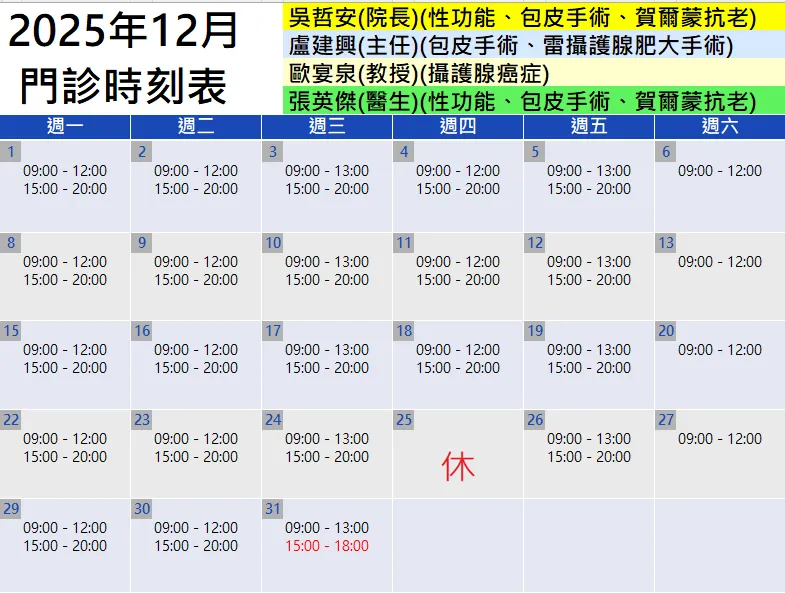 12月看診時間表| 泌尿科推薦| 台中泌尿科推薦| 台中泌尿科