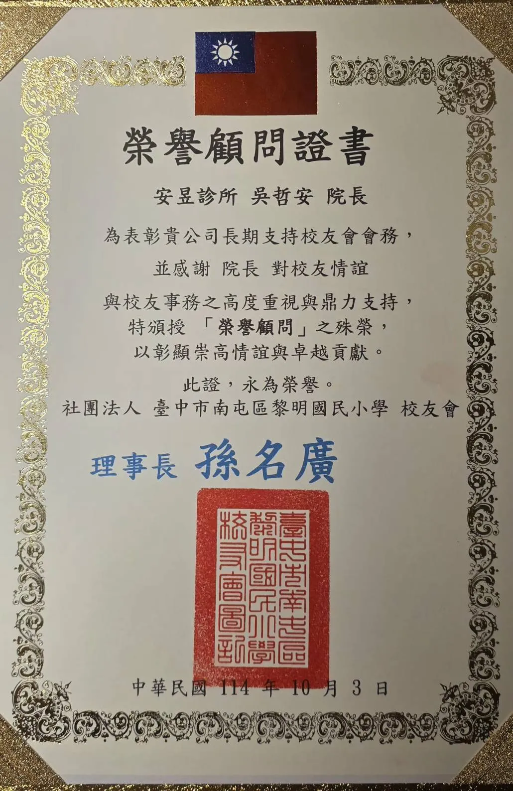 最近,他因持續為黎明國小附近的居民提供專業醫療服務而獲得證書,充分體現了他對周遭鄰裡的深切關注。吳醫師不僅在日常診療中奉獻愛心,還常與社群舉辦健康講座,提升公眾對泌尿健康的認識。