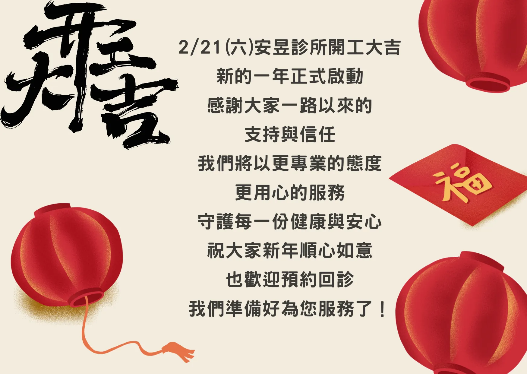 最新消息2/21(六)安昱診所開工大吉!